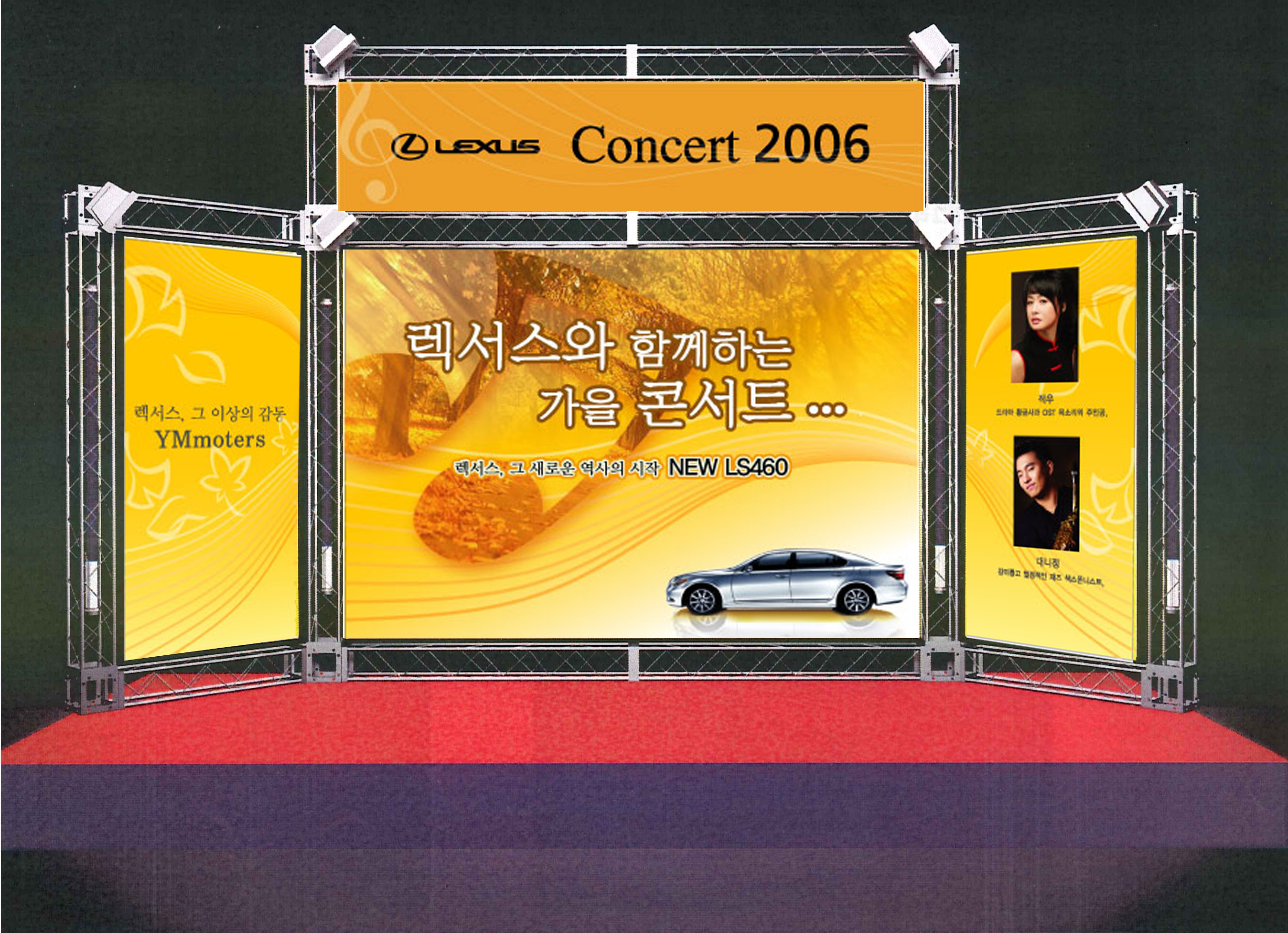 오옷...멋진데요..ㅋㅋ 다만... 무대용인가요?? 그렇담 저렇게 조명 들어갔을때.. 메인글씨가 죽어요~>_< 글씨 테두리를 차라리 먹색으로 하는게...더 눈에 틜듯.ㅋ 부드럽고 가을스럽고..암튼 이쁘네요~ (저도 한때 이벤트 회사 다님서 무대랑 배너 허벌나게 했음.ㅋ)