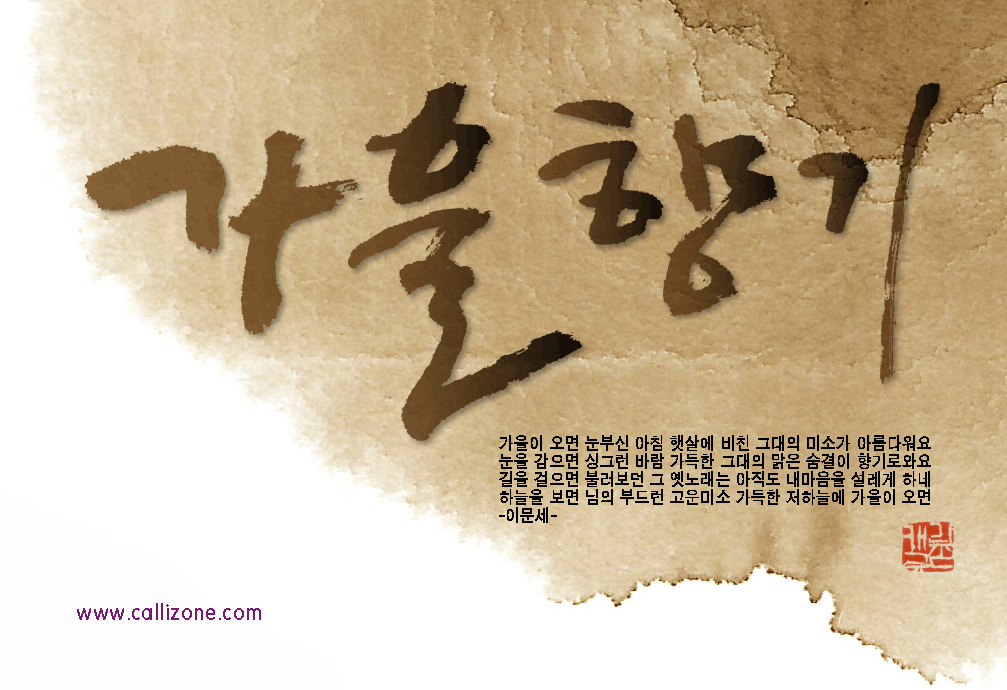 [직접쓴 캘리} 가을향기 callizone 일반 1 9105 2007.10.02 14:07 http://www.callizone.com/home/index.php + 549 가을이 익어가고 있습니다. 가을을 음미하면서 한번 만들어 보았습니다. 회원님들 감기조심 하세요^^